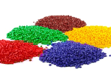 Žaliavos plastiko ir gumos.